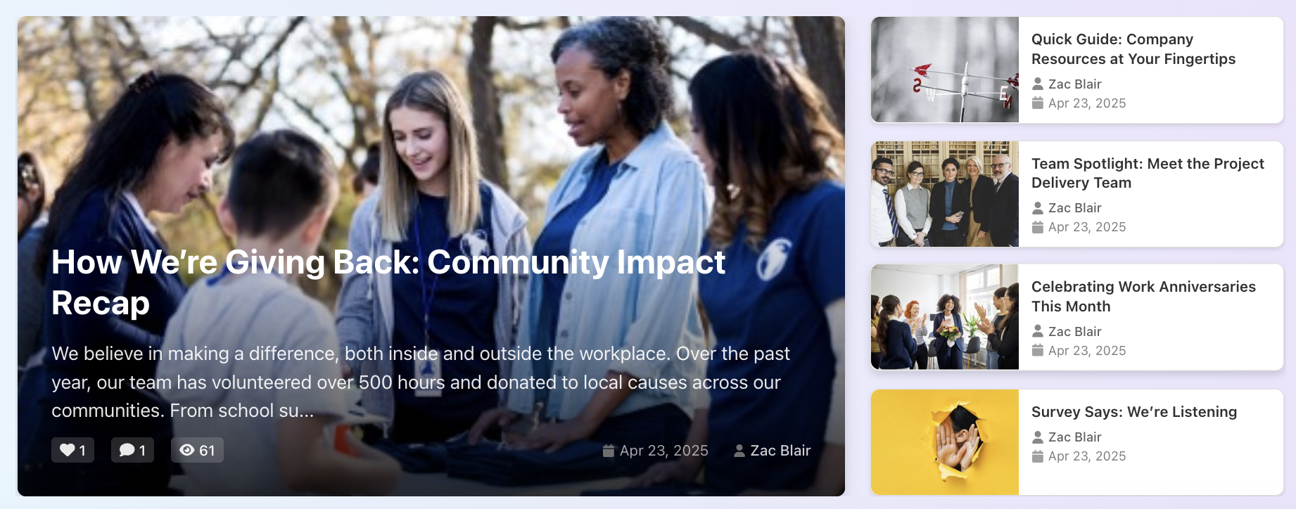 Modern web parts for discovery, personalization, recognition, feedback, and AI-assisted answers — designed to sit alongside LightPath navigation and branding. Select an item to see highlights.